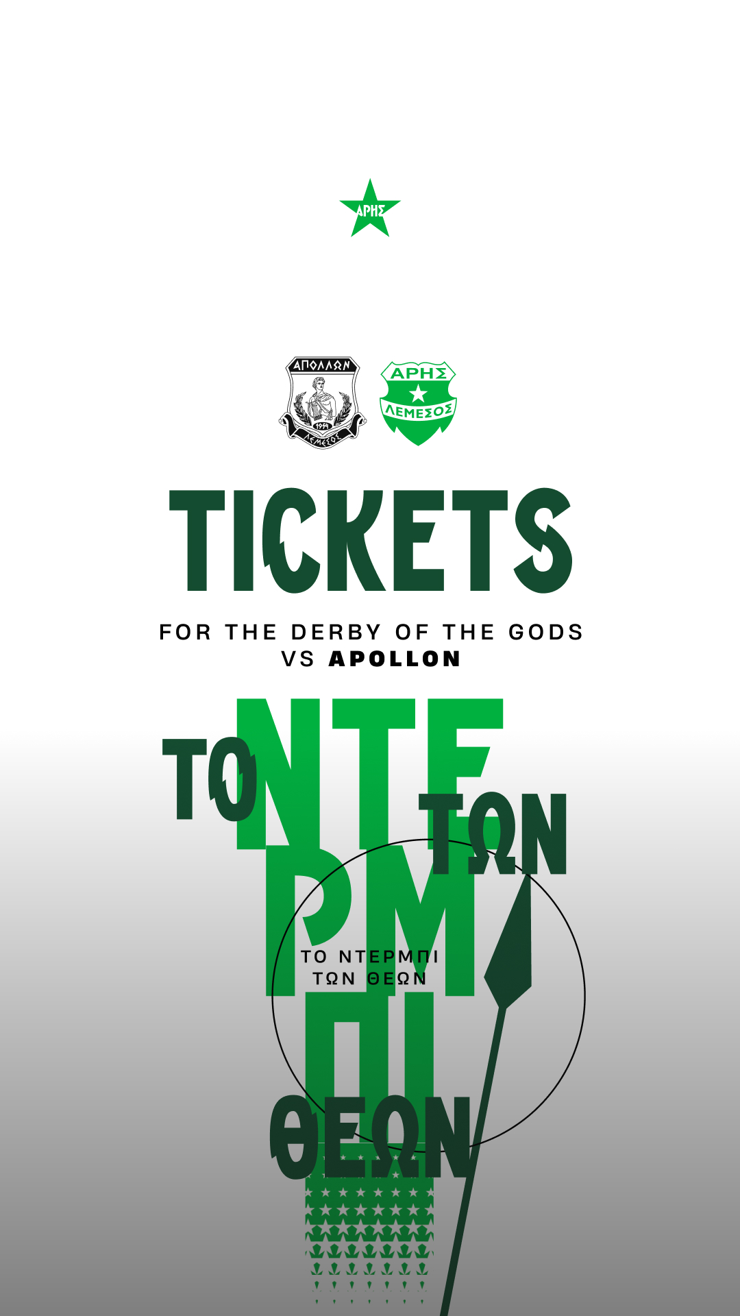 Tickets are available online through our official website: www.arisfc.com until 13:00 on game day. Tickets can also be purchased at our club offices, located at 56 Amathountos Avenue, in Agios Tychonas (opposite the POSEIDONIA hotel) Tuesday to Friday from 09:30 to 17:30 and on Saturday, from 10:00 to 13:00.