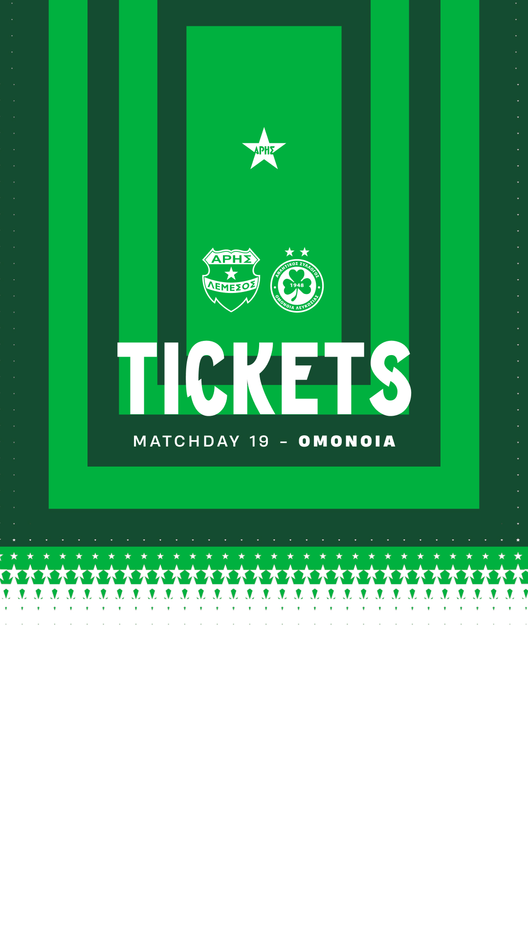 Tickets are available online through our official website: www.arisfc.com. Tickets can also be purchased at our club offices, located at 56 Amathountos Avenue, in Agios Tychonas (opposite the POSEIDONIA hotel) from 09:30 to 17:30 on Tuesday, Thursday and Friday, from 09:30 to 13:00 on Wednesday and from 10:00 to 13:00 on Saturday.