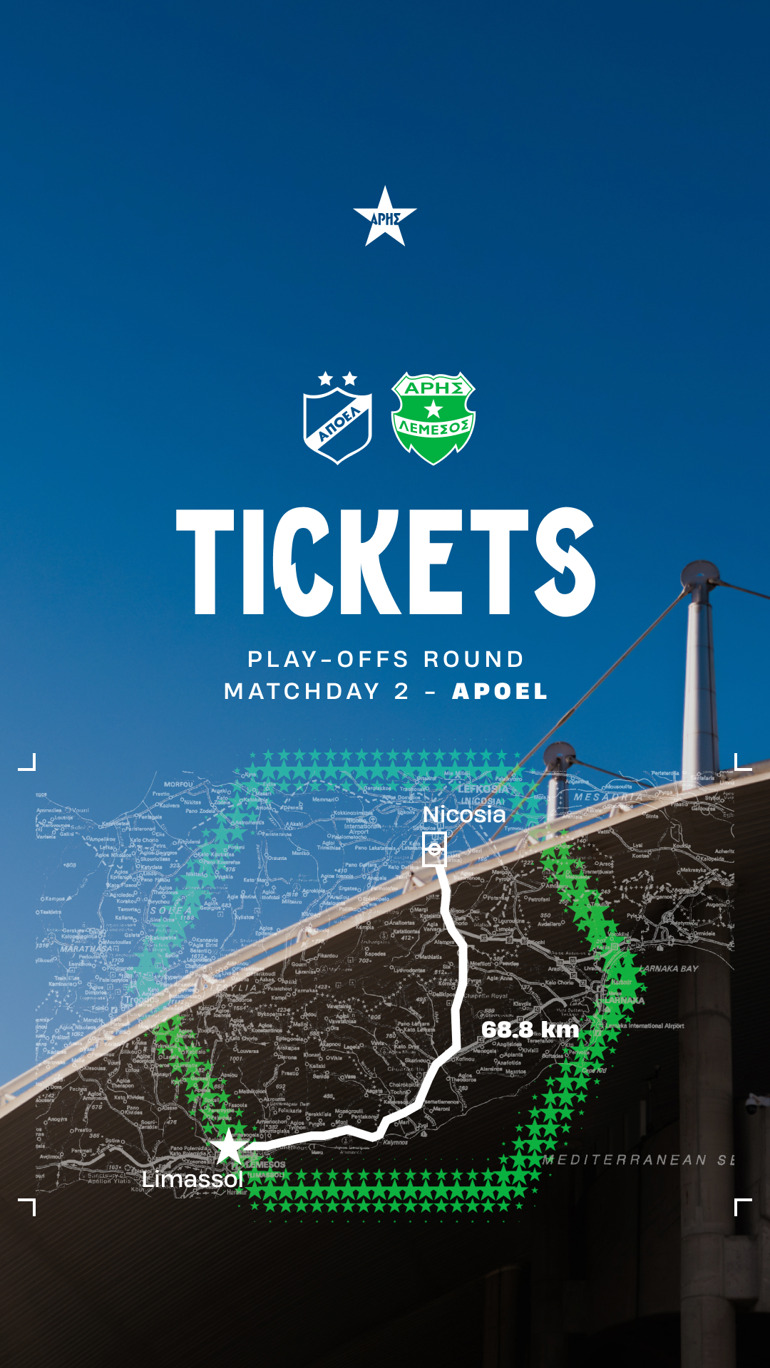 We inform our fans that tickets for our team's away game for Cyprus League by Stoiximan play-offs for matchday 2, against APOEL Nicosia are now available.