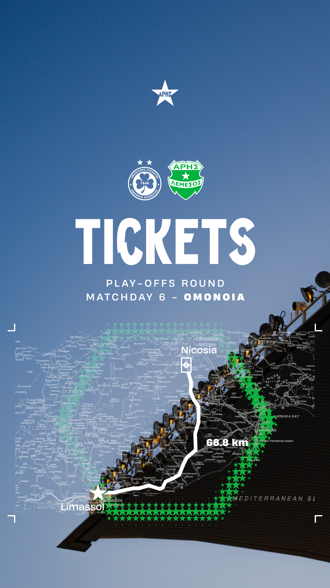 We inform our fans that tickets for Ari’s away game for Cyprus League by Stoiximan play-offs matchday 6, against Omonoia Nicosia are now available.