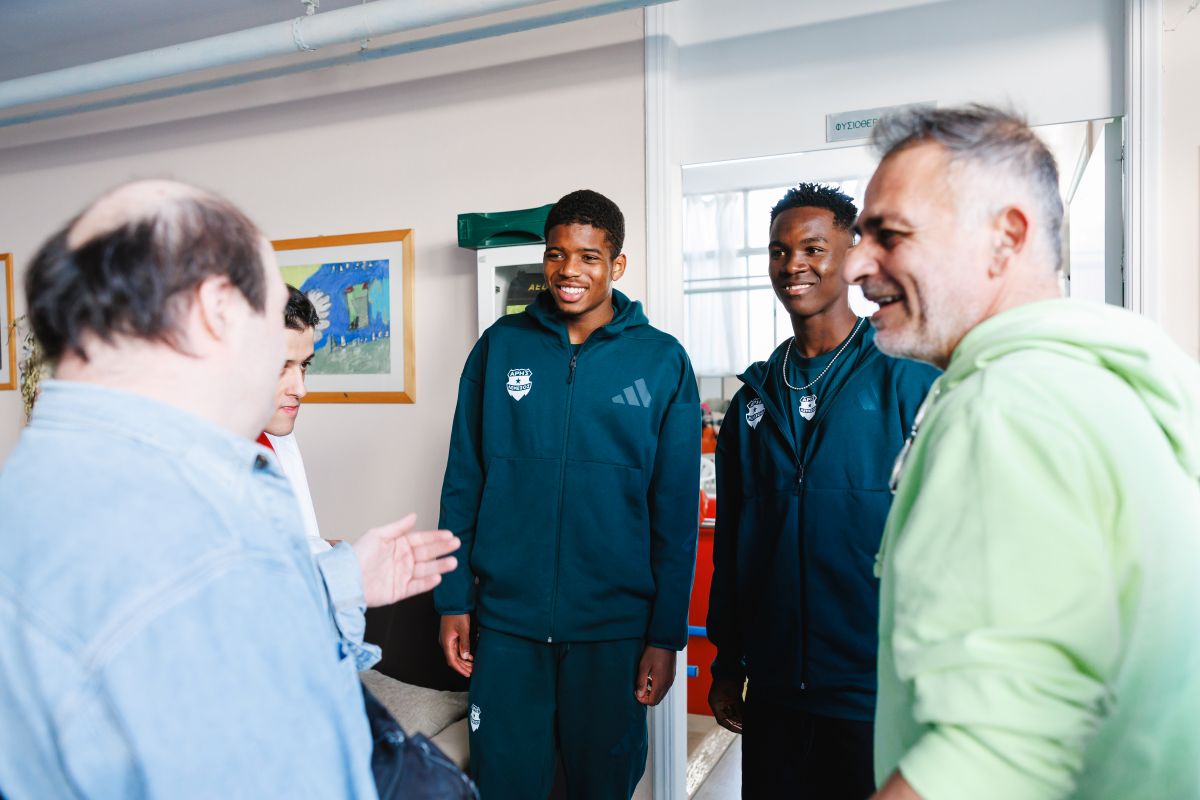 Η αντιπροσωπεία του Άρη παρέδωσε στο ίδρυμα δώρα πρώτης ανάγκης, ενώ ο χορηγός μας προσέφερε εξοπλισμό φυσιοθεραπείας.