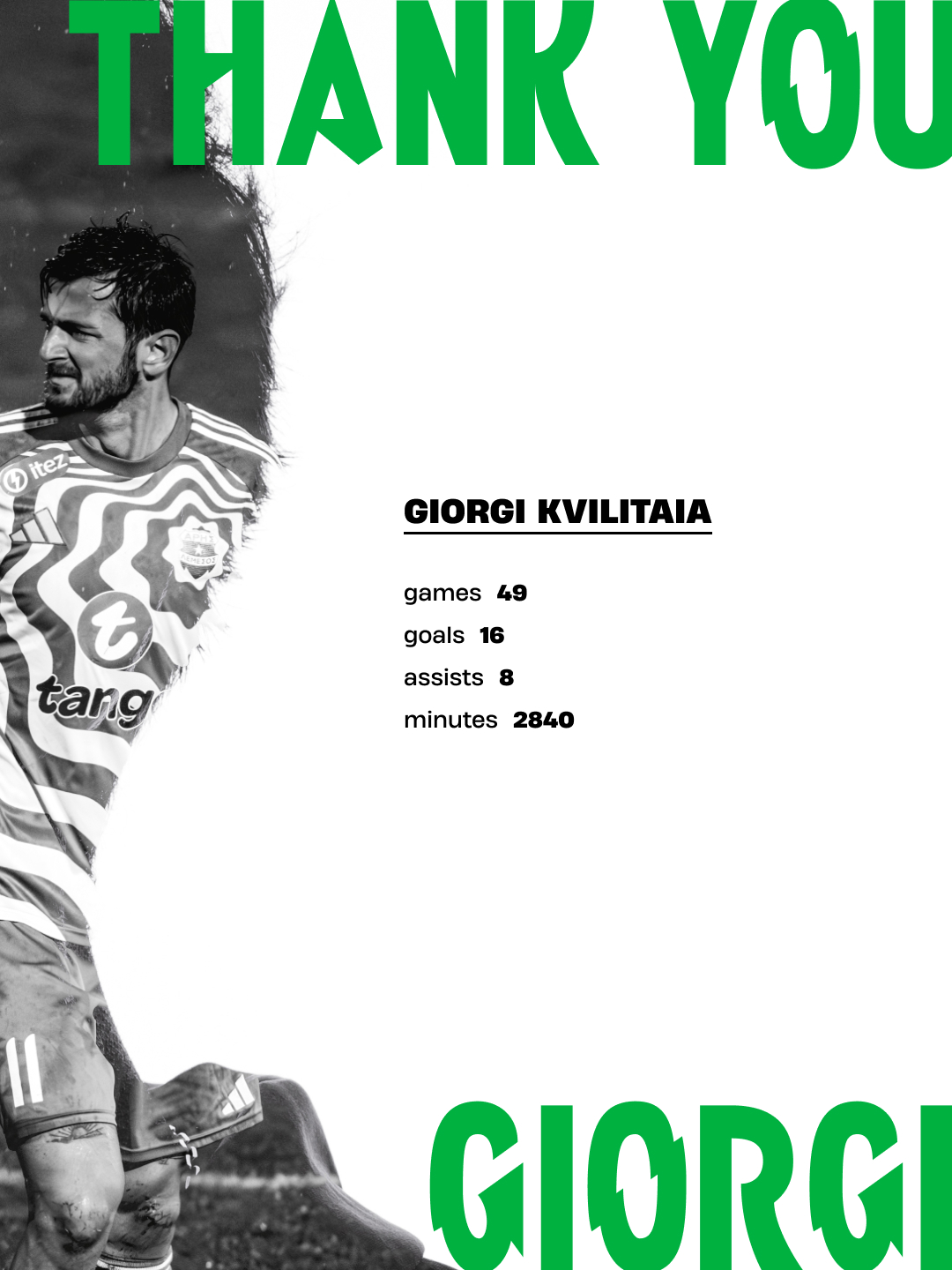 Ο 32χρονος Γεωργιανός επιθετικός ήρθε στην ομάδα μας το καλοκαίρι του 2024.