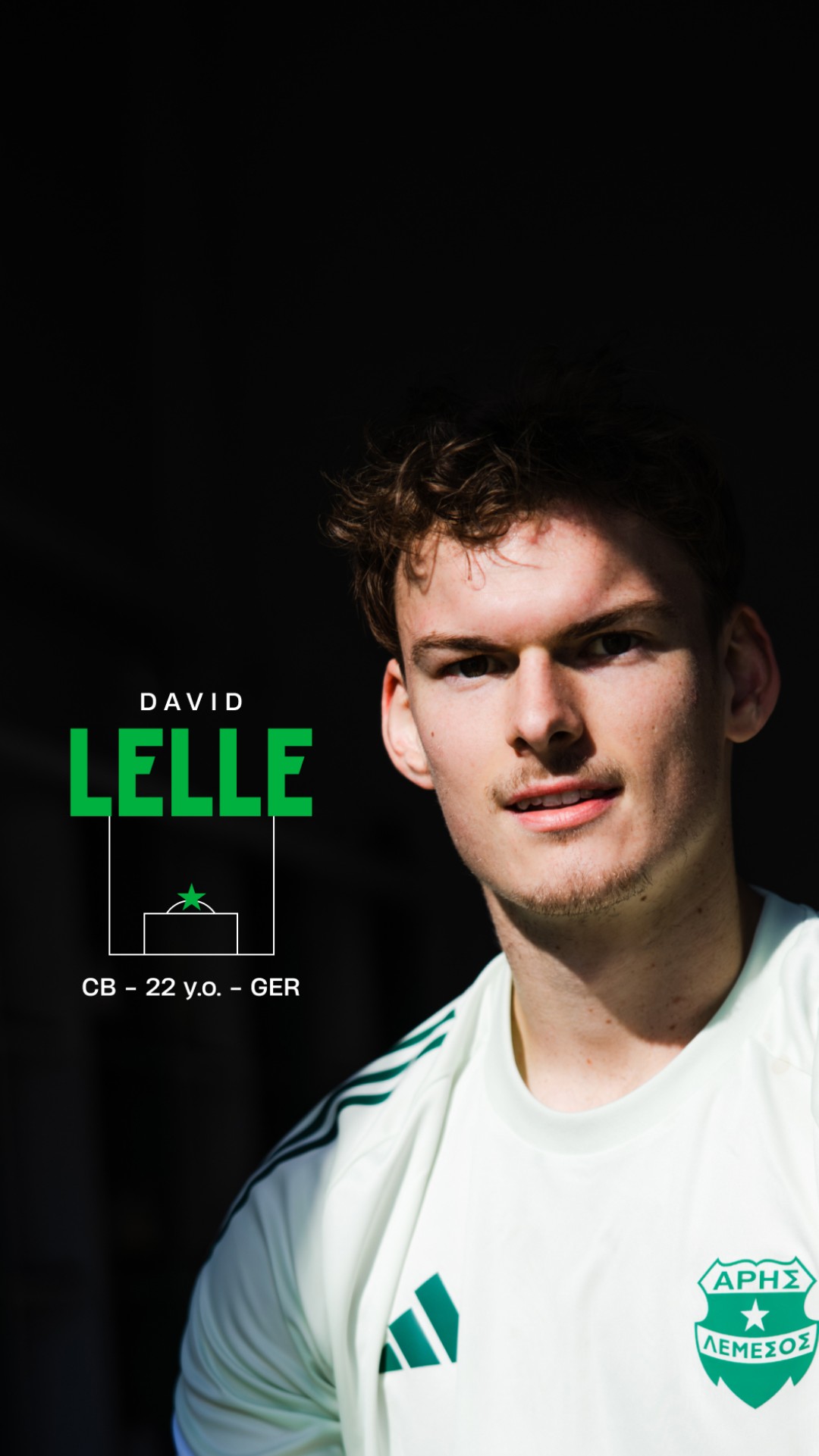 Ο Άρης Λεμεσού ανακοινώνει τη συμφωνία με τον διεθνή Γερμανό κεντρικό αμυντικό Ντάβιντ Λέλε για τα επόμενα δυόμισι (2,5) χρόνια.