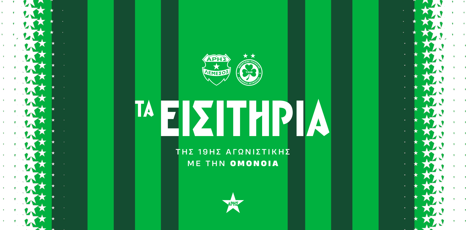 Τα εισιτήρια διατίθενται διαδικτυακά από την επίσημη ιστοσελίδα μας www.arisfc.com. Επίσης, από τα γραφεία της ομάδας μας στην Λεωφόρο Αμαθούντος 56, στον Άγιο Τύχωνα (απέναντι από το ξενοδοχείο POSEIDONIA), Τρίτη, Πέμπτη και Παρασκευή από τις 09:30 έως τις 17:30. Την Τετάρτη 21 Ιανουαρίου 09:30 με 13:00 και το Σάββατο, 24 Ιανουαρίου 10:00 με 13:00.
