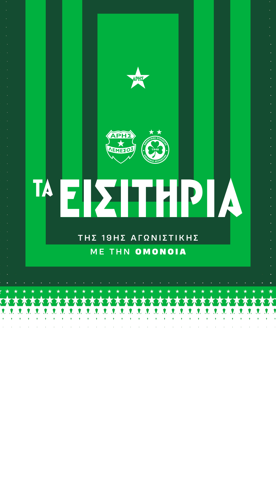 Διευκρινίζεται ότι εισιτήρια για τις κερκίδες που αντιστοιχούν στους φίλους του Άρη, μπορούν να προμηθευτούν μόνο όσοι έχουν παρευρεθεί σε τουλάχιστον τρία παιχνίδια του Άρη τα τελευταία χρόνια.
