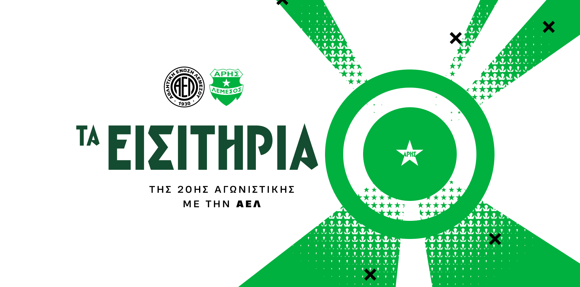 Τα εισιτήρια διατίθενται διαδικτυακά από την επίσημη ιστοσελίδα μας www.arisfc.com μέχρι τις 14:00 την Κυριακή, ημέρα του αγώνα. Επίσης, από τα γραφεία της ομάδας μας στην Λεωφόρο Αμαθούντος 56, στον Άγιο Τύχωνα (απέναντι από το ξενοδοχείο POSEIDONIA), Τρίτη με Παρασκευή από τις 09:30 έως τις 17:30 και το Σάββατο 10:00 με 13:00.