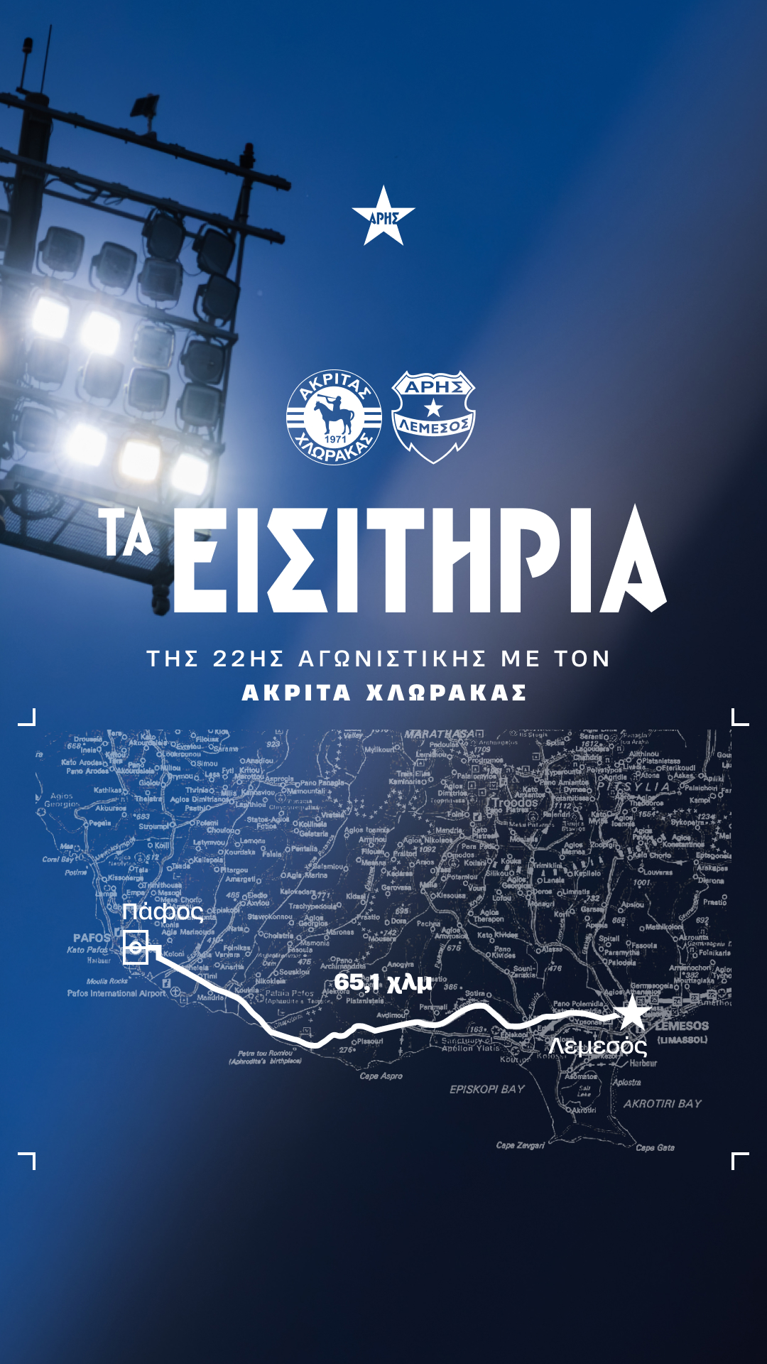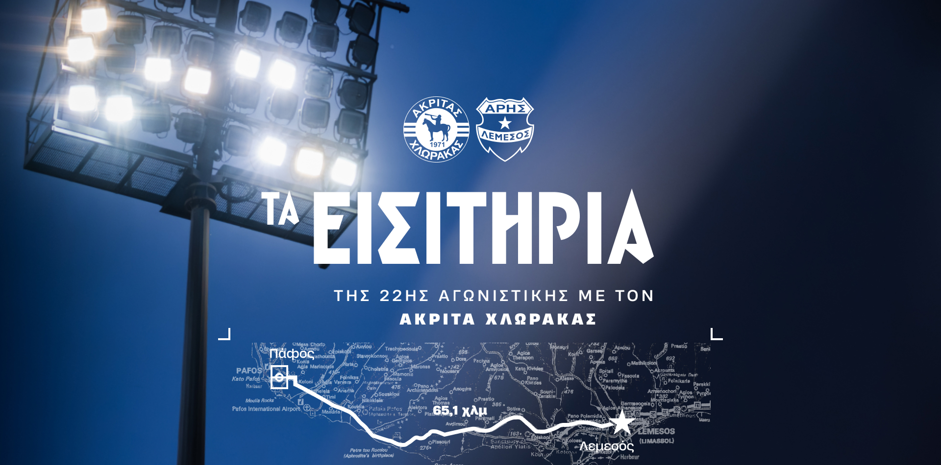 Ενημερώνουμε τους φιλάθλους μας ότι ξεκίνησε η διάθεση των εισιτηρίων του εκτός έδρας αγώνα της ομάδας μας στο πλαίσιο της 22ης αγωνιστικής της Cyprus League by STOIXIMAN, με αντίπαλο τον Ακρίτα Χλώρακας.