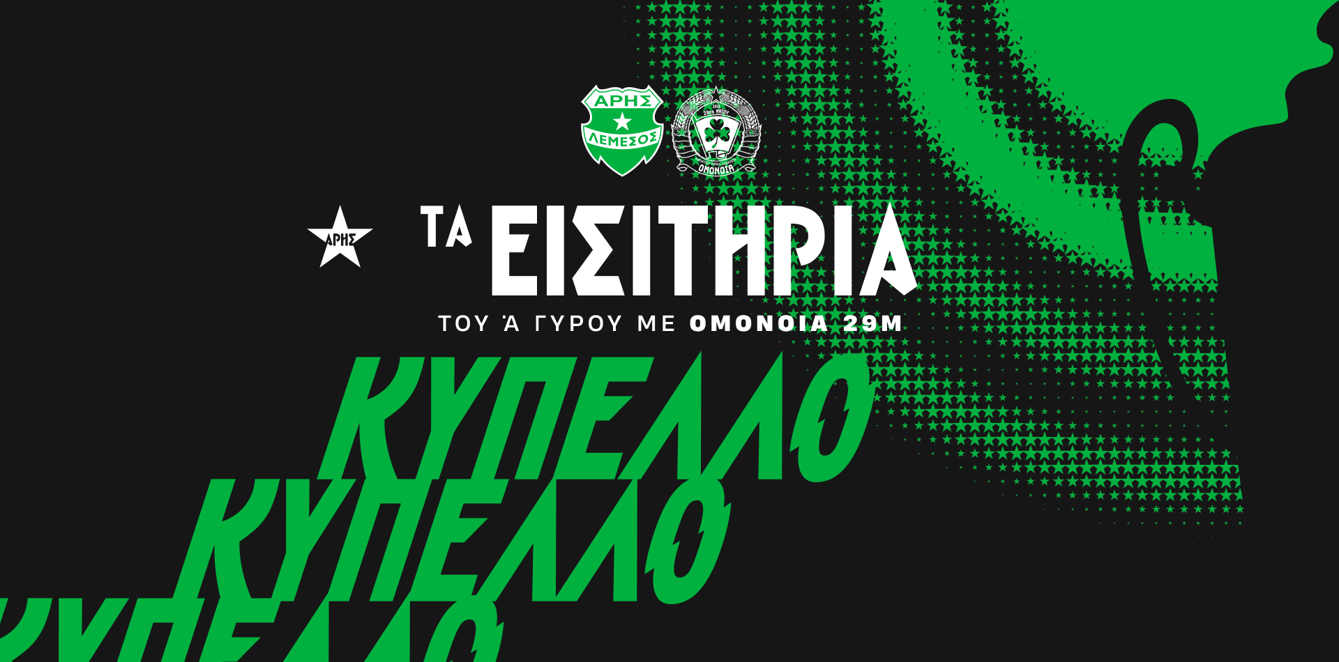 Τα εισιτήρια διατίθενται διαδικτυακά από την επίσημη ιστοσελίδα μας www.arisfc.com. Επίσης, από τα γραφεία της ομάδας μας στην Λεωφόρο Αμαθούντος 56, στον Άγιο Τύχωνα (απέναντι από το ξενοδοχείο POSEIDONIA), από τις 09:30 έως τις 17:30 τις καθημερινές, 10:00-13:00 το Σάββατο και την Τετάρτη, μέρα του αγώνα, 09:30 με 13:00.