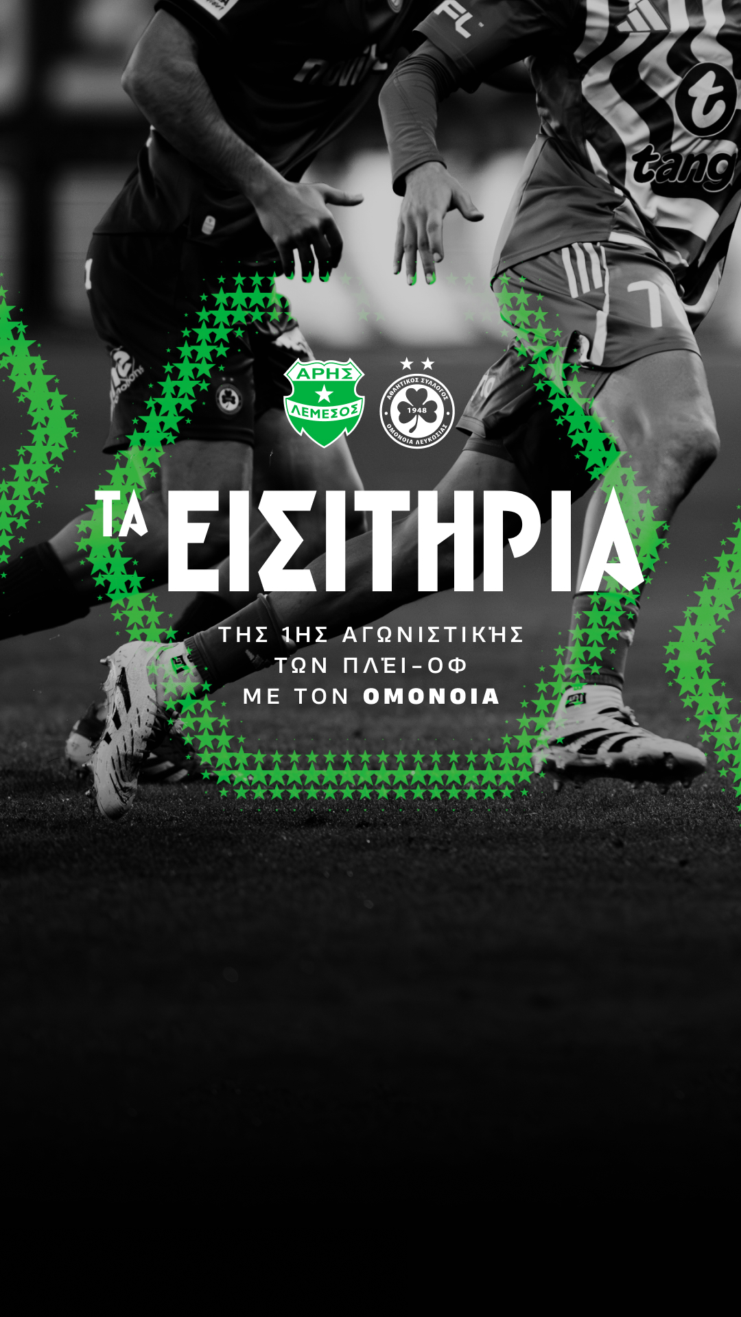 Διευκρινίζεται ότι εισιτήρια για τις κερκίδες που αντιστοιχούν στους φίλους του Άρη, μπορούν να προμηθευτούν μόνο όσοι έχουν παρευρεθεί σε τουλάχιστον τρία εντός έδρας παιχνίδια του Άρη τα τελευταία χρόνια.