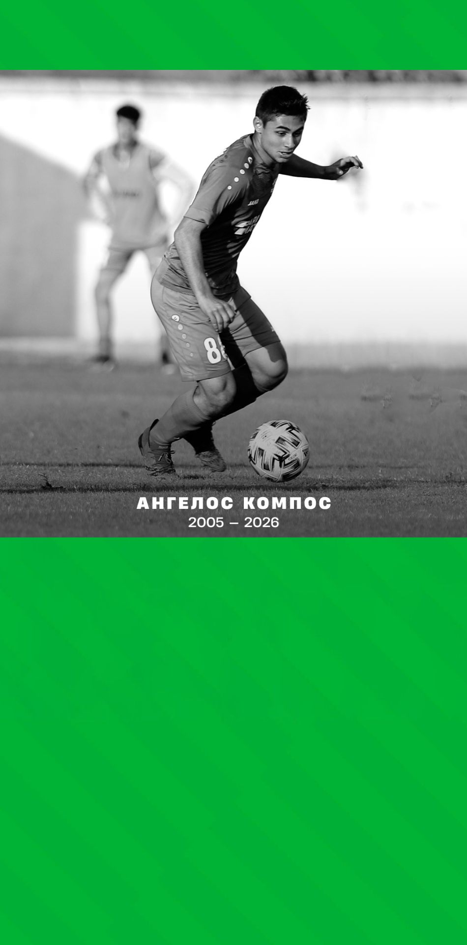 Ангелос был волевым молодым человеком, преданным команде и страстно влюбленным в футбол; он оставил свой след как на поле, так и за его пределами. Его уход наполнил наши сердца глубокой скорбью.