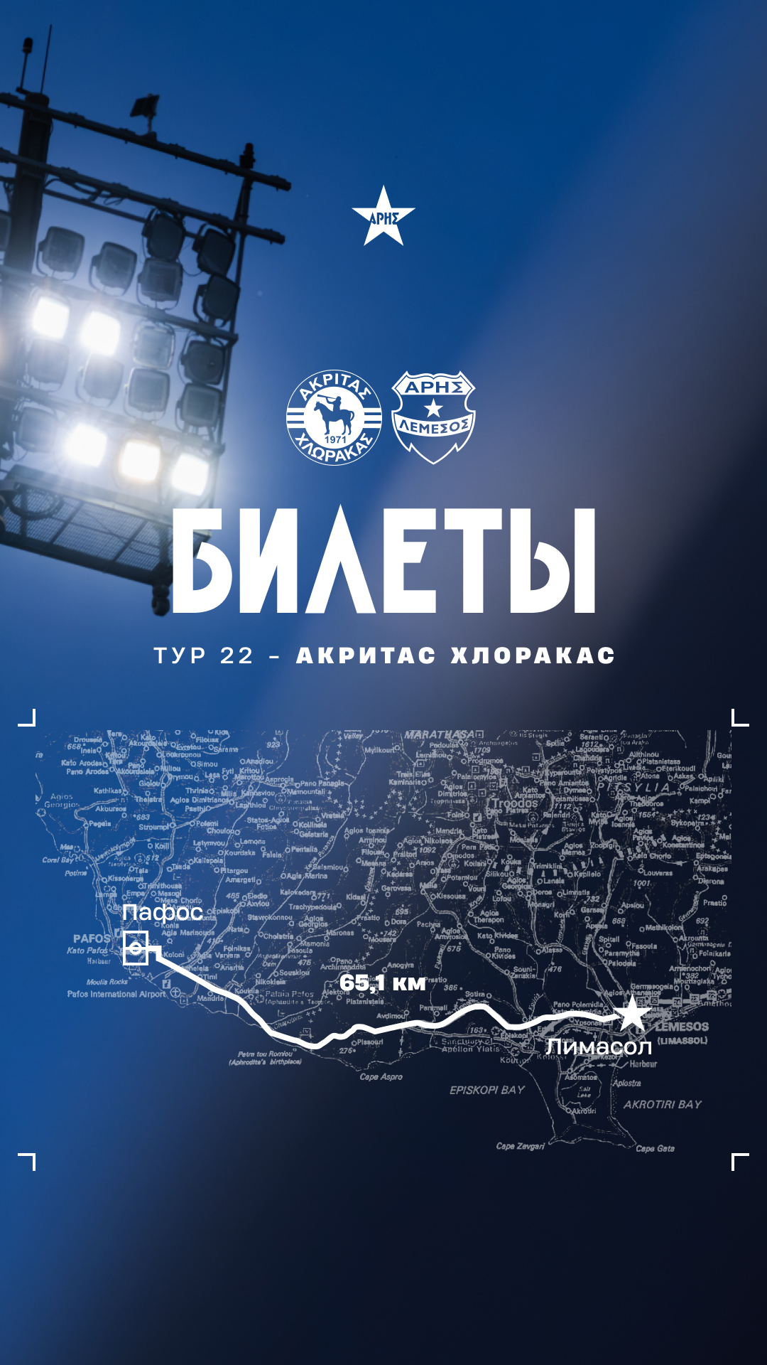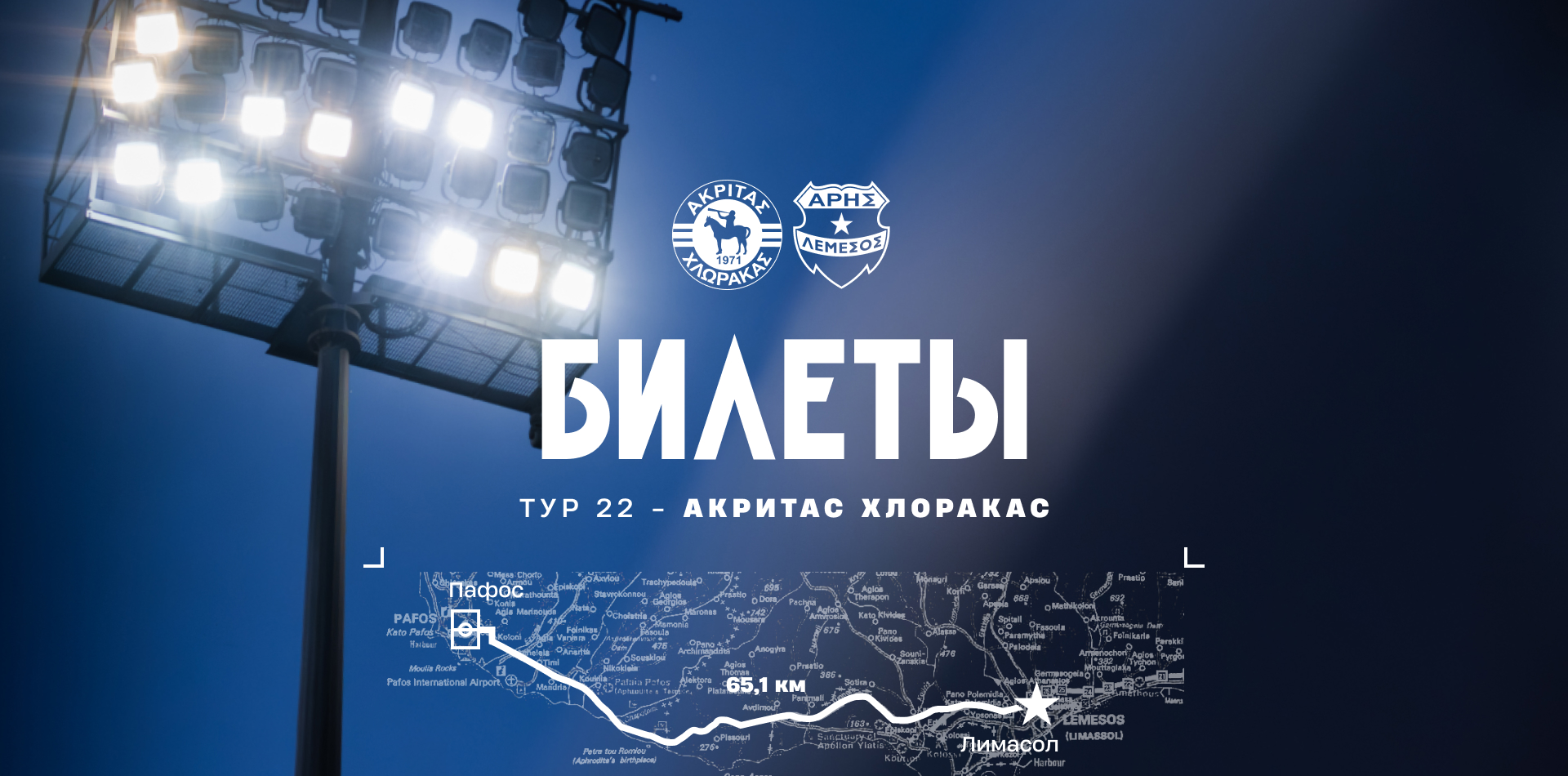 Сообщаем нашим болельщикам о начале продажи билетов на выездной матч 22-го тура чемпионата Кипра (Cyprus League by Stoiximan) против команды «Акритас Хлорака».